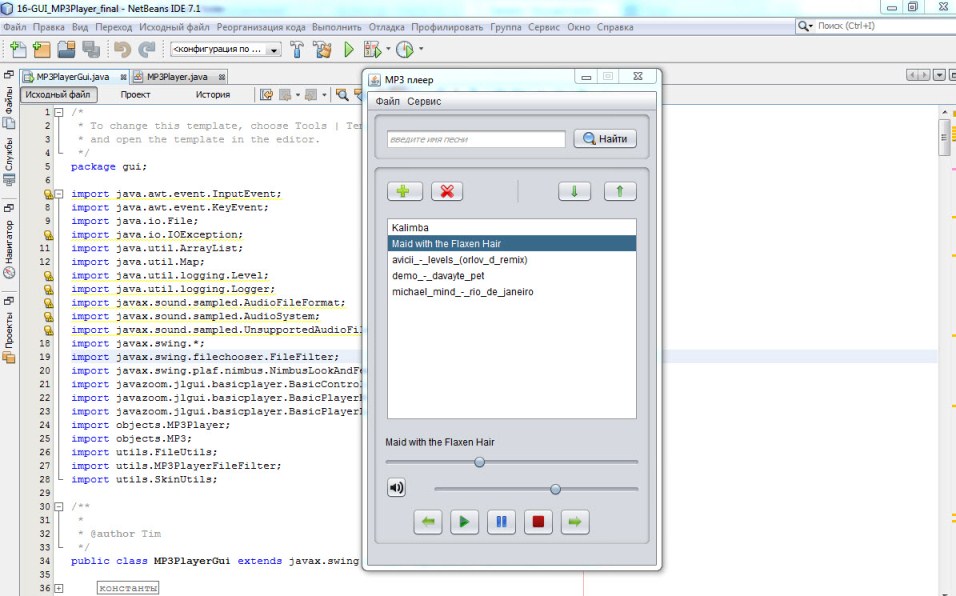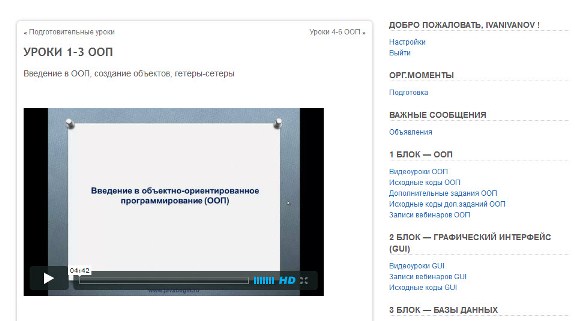 Вчера состоялось заключительное занятие по курсу javabegin.ru, который включал в себя 2 блока: объектно-ориентированное программирование и графический интерфейс. Чтобы я хотел сказать по итогам занятий по этому курсу? Я уже некоторое время назад изучаю JAVA. В основном, знания, которыми я владею, они почерпнуты из этих книг – это Шилка и Эккель. Кроме того, я делал задания, выложенные на сайте Oracle, но было довольно много вопросов, в частности, по ООП, ответы на которые мне были неведомы, либо я знал ответы на эти вопросы частично, то есть не было полного понимания. Например, зачем используются интерфейсы? Какая у них задача, если итак в классе методы реализуется, например, или когда и как использовать конструкторы? Почему бывает столько разных возможностей? Так же, как реализуется множественное наследование и вообще, зачем наследование нужно, и как им правильно пользоваться? Довольно много вопросов. Могу сказать, что сейчас ответить на эти вопросы для меня не составляет никакого труда. Второй блок, по графическому интерфейсу, представляет из себя практическую работу, в основном, то есть мы делали калькулятор и мы делали mp3 плеер. По калькулятору скажу так, что калькулятор я делал сам некоторое время назад просто для тренировки и если сравнить коды первой версии и второй версии этой программы, то можно так сказать, что это небо и земля. Почему я так говорю? Потому что во второй версии очень простой для понимания программный код. В нем легко разобраться. Ошибки отработаны, переменные и внутренние методы спрятаны, то есть нормальная, с точки зрения организации, правильной организации, программа, чего не могу сказать о первой. MP3 плеер - это особенно интересное задание. Там я узнал много нового. Там мы работали со звуком, подключали библиотеки. Там делалось меню с помощью NetBeans дизайнер. Кстати, очень удобные штуки для визуальной оболочки, для создания меню и графических интерфейсов. Было много различных домашних заданий, дополнительных заданий, так что пришлось поломать голову, но я доволен работой, которая была проведена. Курс ни в коем случае не прошел зря. Я получил для себя много новых знаний. Могу рекомендовать всем, кто хочет понять основы JAVA, всем, кто интересуется этим языком. Хороший курс. Затратите намного меньше времени, чем доходя до этого самостоятельно. Спасибо, всем удачи. Вадим Герасименко